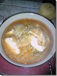暖かい日だったにもかかわらず、鍋料理を食べました。